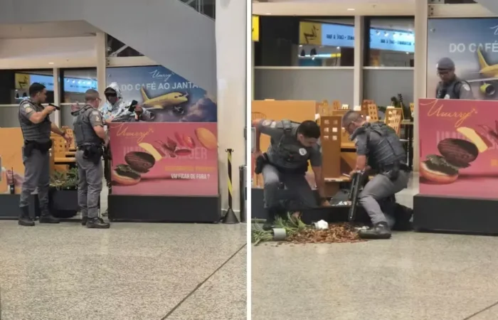 Homem em surto é contido com taser após ameaçar passageiros com espada em Viracopos