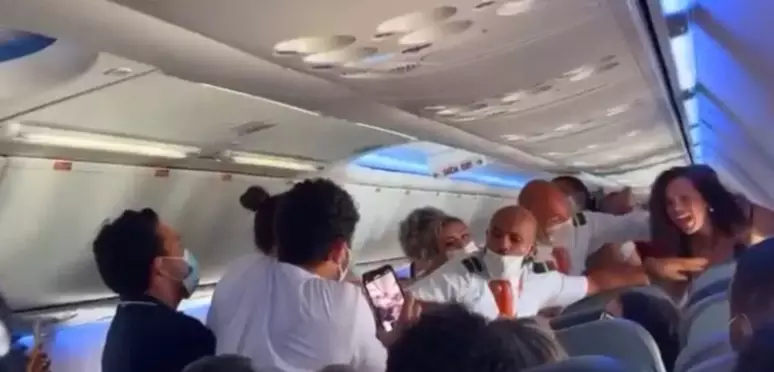 Por conta da confusão, o voo acabou atrasando cerca de uma hora. No vídeo, é possível ver os comissários tentando separar os passageiros e pedindo calma, mas sem sucesso.