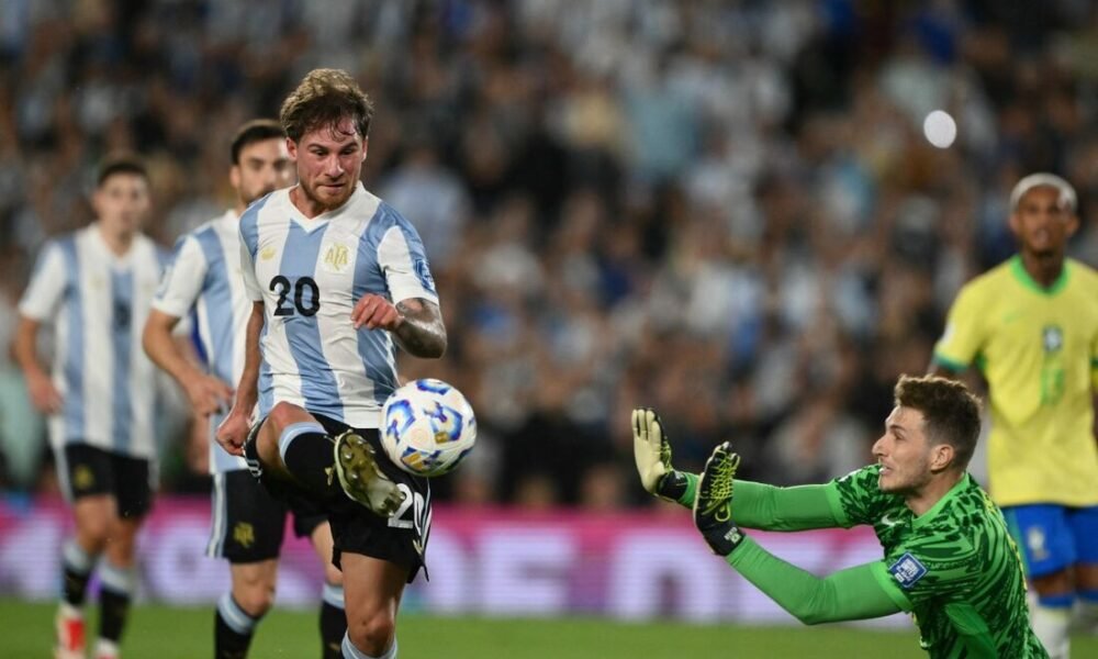 No estádio Monumental de Núñez, a seleção argentina mostrou força e venceu o Brasil por 4 a 1 em um jogo válido pela 14ª rodada das Eliminatórias da Copa do Mundo. O primeiro tempo foi decisivo, com os donos da casa marcando três vezes: Julián Álvarez abriu o placar, seguido por Enzo Fernández e Alexis Mac Allister. O Brasil conseguiu reduzir com Matheus Cunha, mas, no segundo tempo, Giuliano Simeone consolidou a vitória argentina.