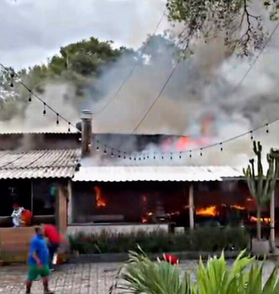 Um fogo intenso atingiu o estabelecimento comercial Espetinho do Dinho, uma churrascaria situada na Avenida Beira-Mar (orla norte) de Porto Seguro, na região sul da Bahia, no início da tarde desta quarta-feira, dia 22.