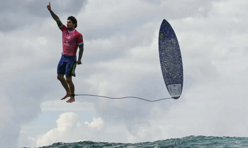 O registro feito por Jerome Brouillet durante os Jogos Olímpicos de Paris ganhou o ‘Oscar’ da fotografia. O francês registrou o exato momento em que Gabriel Medina comemorou uma onda que lhe rendeu uma nota de 9,90 e avançou às quartas de final após vitória sobre o japonês Kanoa Igarashi na disputa olímpica, no Taiti, na Polinésia Francesa.